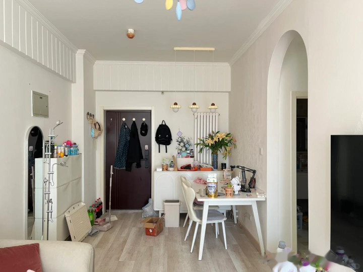 我家是横厅,餐桌放在沙发后面,不设隔断,视野开阔,朋友来了都夸很显大!