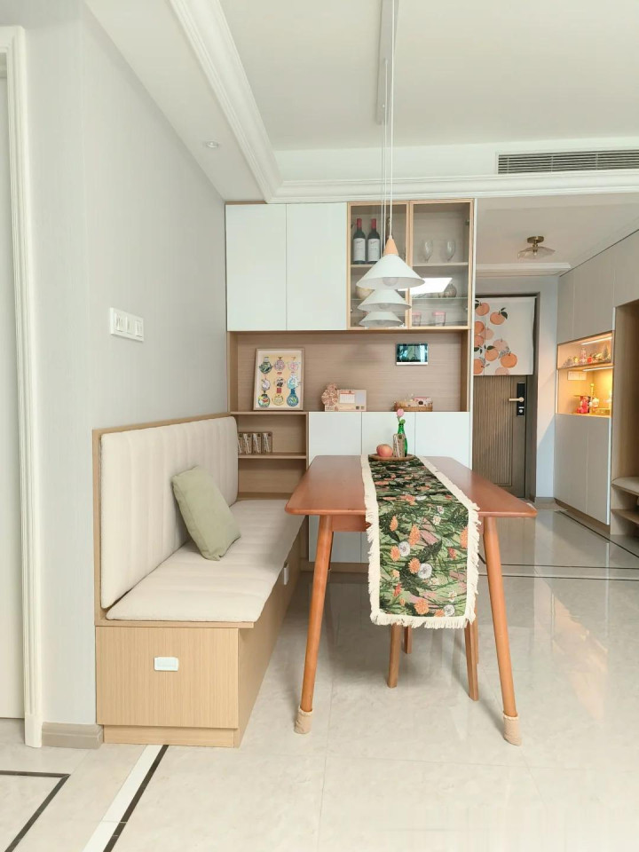 做了个卡座+餐桌靠墙,不仅省空间,还能做很多人,太适合小户型了!