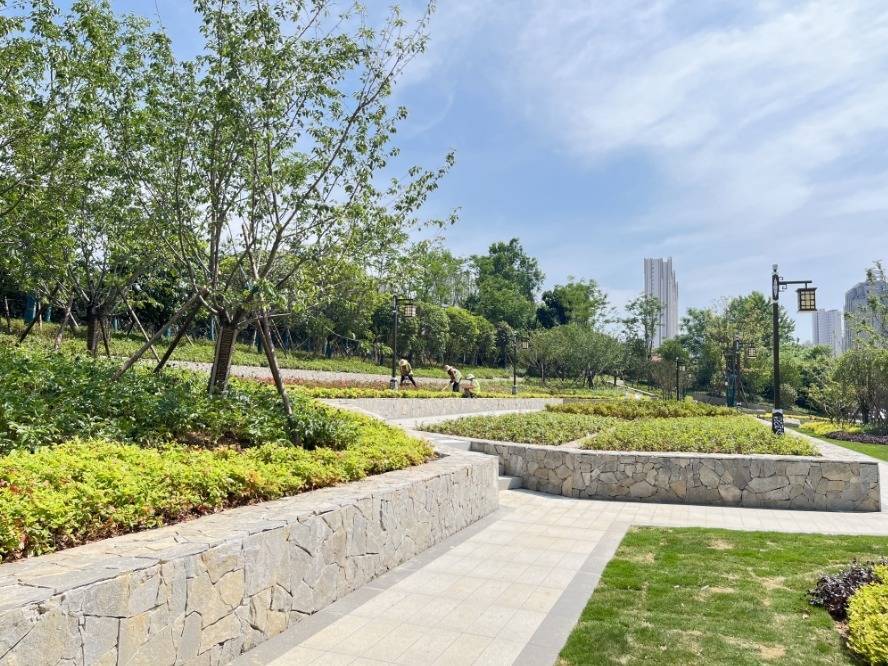 “我们以300米见绿、500米见园为目标配套城市公园体系,利用城市‘边角料’,花式‘变废为宝’,‘拆墙透绿’‘见缝插绿’打造城市微空间,因地制宜补齐了公园绿地服务半径覆盖率短板,完善了‘综合公园一社区公园一口袋公园’的城市建设规划。”胡立新说。