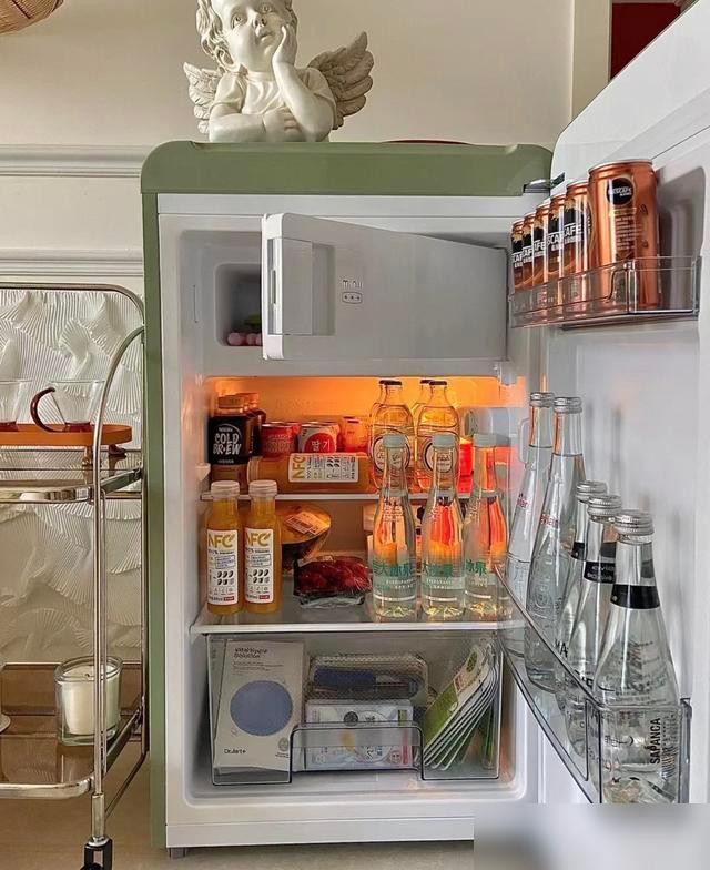 我邻居姑娘就这么干,客厅的迷你冰箱里堆满了冰可乐、荔枝、面膜,甚至还有她猫的冻零食。