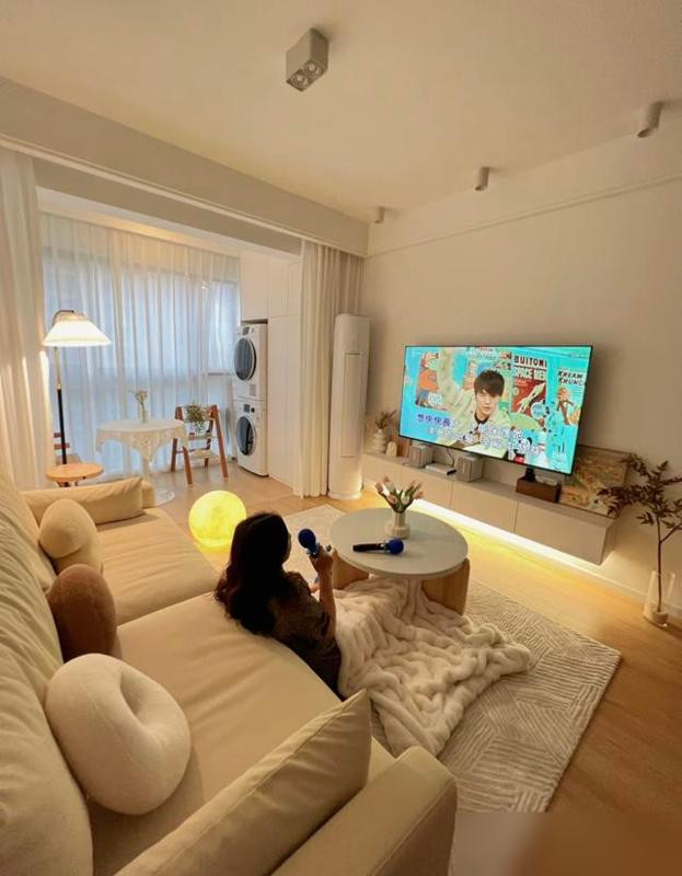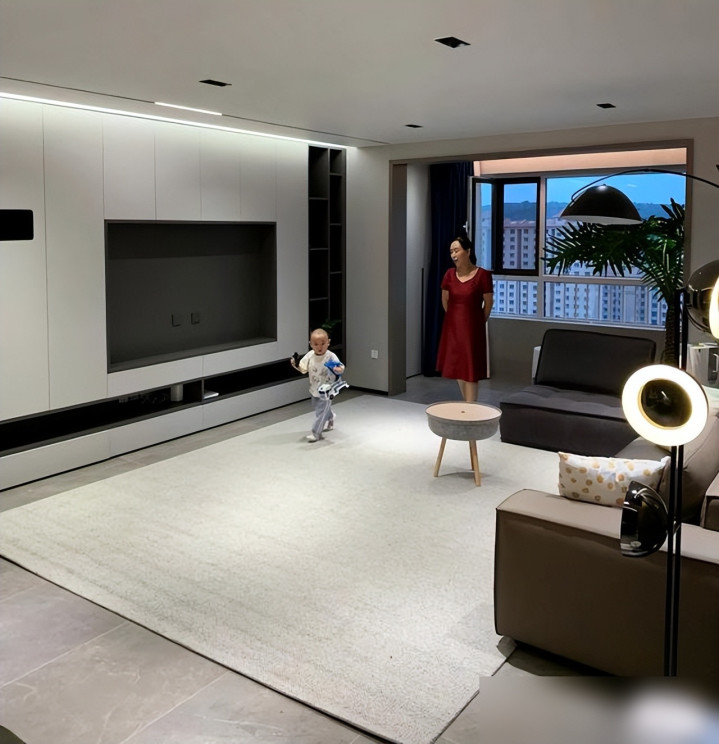 现在年轻人的客厅,哪里是“装修”啊,明明是“把喜欢的生活装进去”。比如放个回音壁,不是为了显有钱,是为了听《命运交响曲》时,能感受到音符在客厅里“跑”;弄个家庭KTV,不是为了吵邻居,是为了老妈唱《小城故事》,儿子唱《孤勇者》,全家笑成一团;铺个大地毯,不是为了好看,是为了光脚踩上去的软乎劲,连踩脏了都觉得“这才是生活的痕迹”。