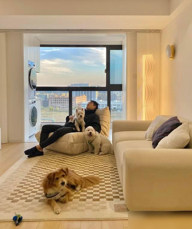 我弟买了个科技布的懒人沙发,平时瘫在上面打游戏,傍晚能拉到阳台看夕阳,周末陪狗玩的时候,直接把沙发拖到狗窝旁边,狗趴在他腿上,他抱着手机刷视频,比固定沙发灵活一百倍。